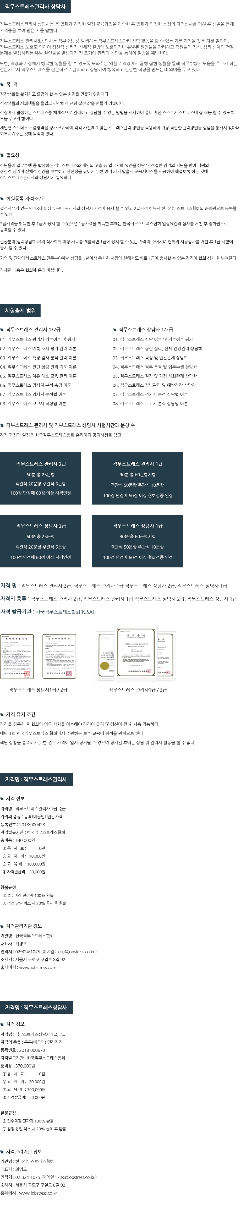 직무스트레스 관리사,상담사 1/2급Home > 협회 관련정보 > 직무스트레스 관리사,상담사 1/2급